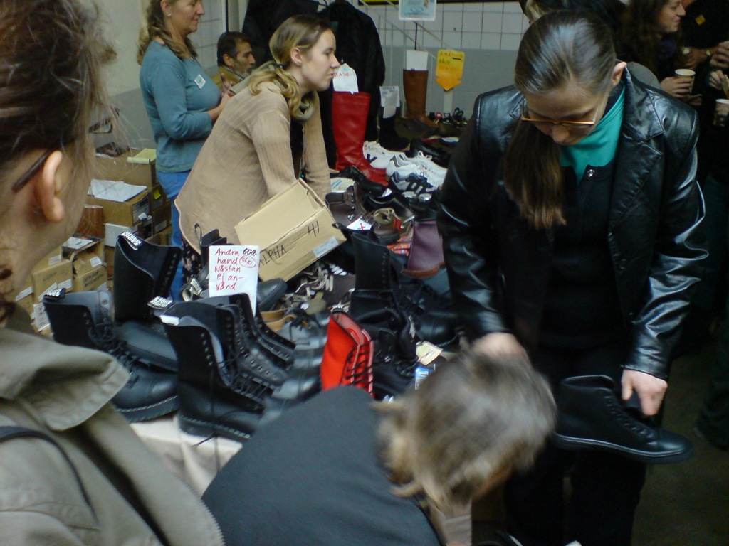 Där inne var det trångt, trångt. Ett större rum utgjorde hela mässan med bord längs väggarna och i en fyrkant i mitten. Folkmängden gjorde det svårt att ens se vad de olika utställarena erbjöd för något. Vi smakade i alla fall på en väldigt god linssoppa från Seyhmus och en smarrig vegoburgare från Nutana. En kort pratstund med Veganrunners blev det också. Just innanför dörren ställde Vegoguiden ut, en webbplats som strävar efter att bli landets bästa guide för att äta vegetarisk mat på restaurang. Djurrättsalliansen anordnade mässan och det syntes då en stor del av utställarna var relaterade till djurrätt.